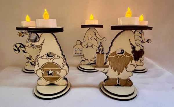 Blaue und schwarze Linien werden geschnitten, rote und grüne graviert und orangene füllend graviert. Die Wichtel werden doppelt geklebt, damit auch die Rückseite schön aussieht.