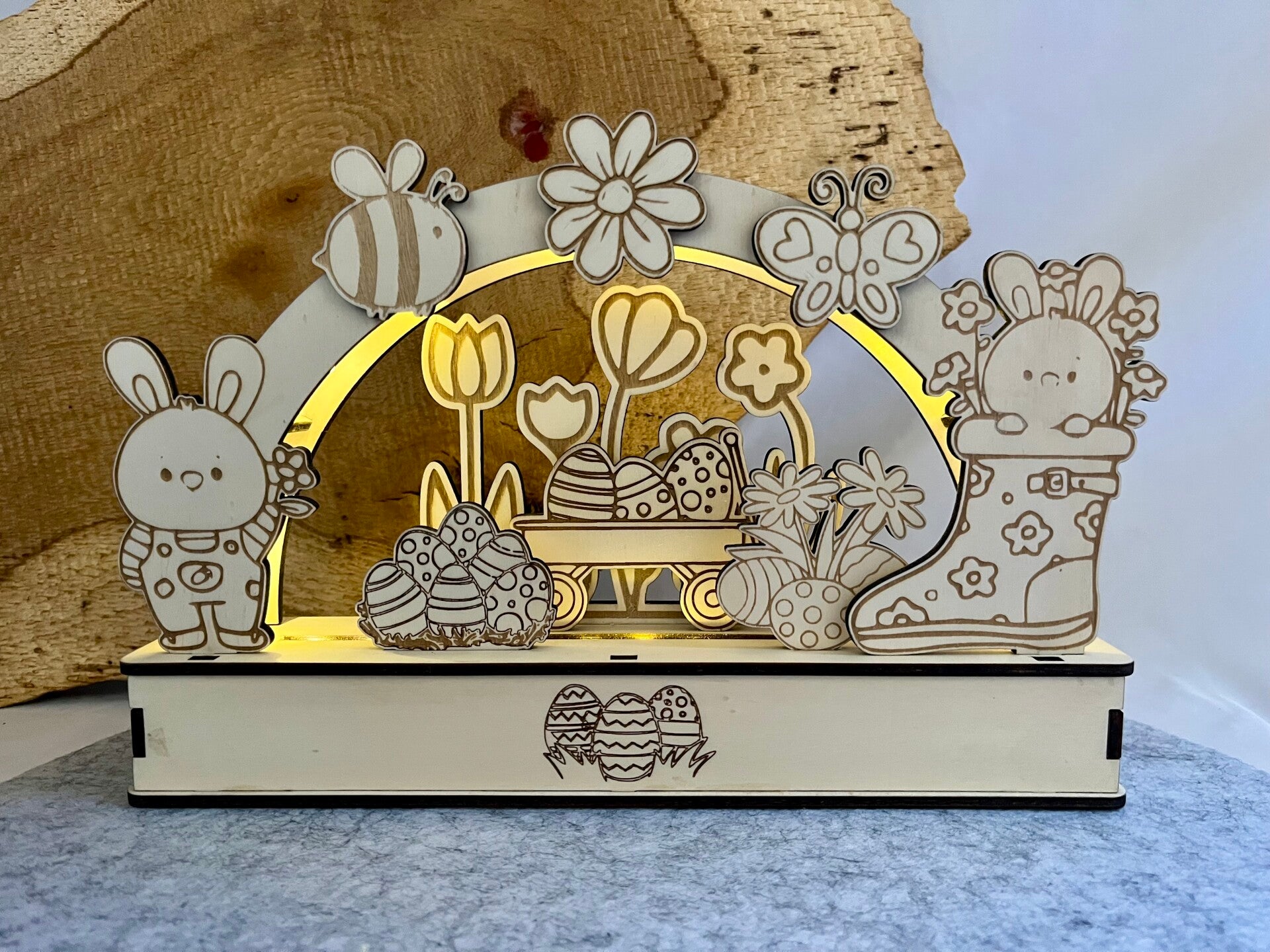 Die Laser-Datei „ Lichterbogen Ostern und Frühling 3 mm“ ist ein liebevoll gestaltetes Deko-Design zum Download, ideal für kreative DIY- & Laserprojekte.
